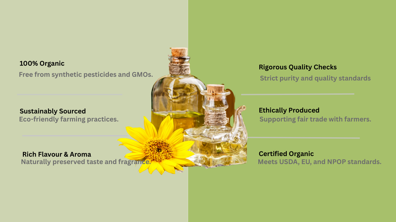 At Far Overseas, our organic oils are cold-pressed making them the healthiest variant of oil available to us, preserving their natural goodness, aroma and rich flavor. Containing the natural antioxidant of the seed from which they are produced. Experience the purity and quality of our organic oils.